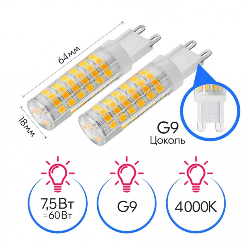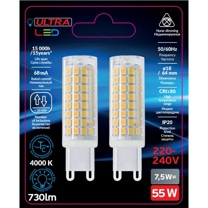 Светодиодная лампа ULTRA LED G9 7.5W 4000K 2 шт